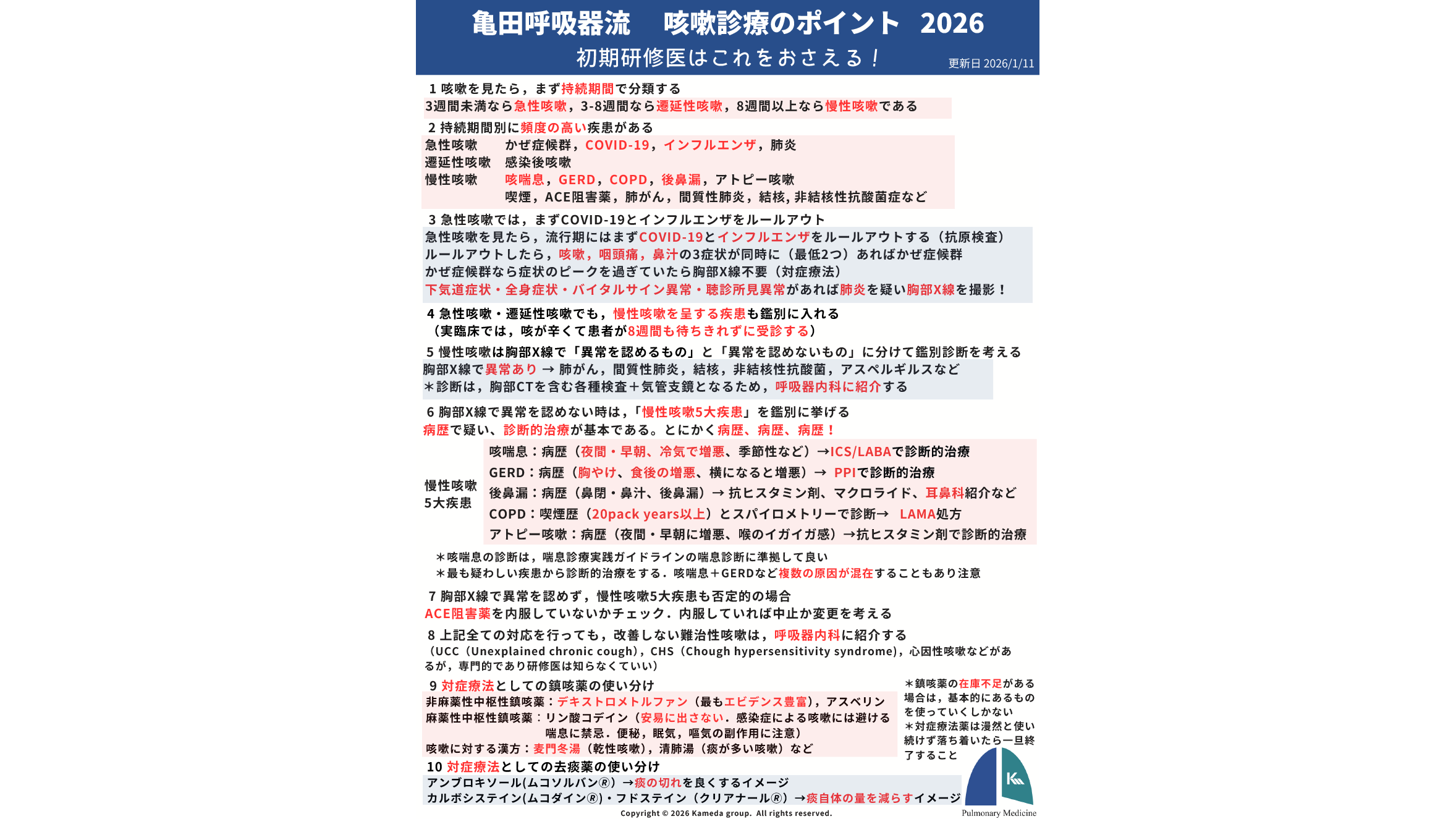 亀田呼吸器流 咳嗽診療のポイント 2026