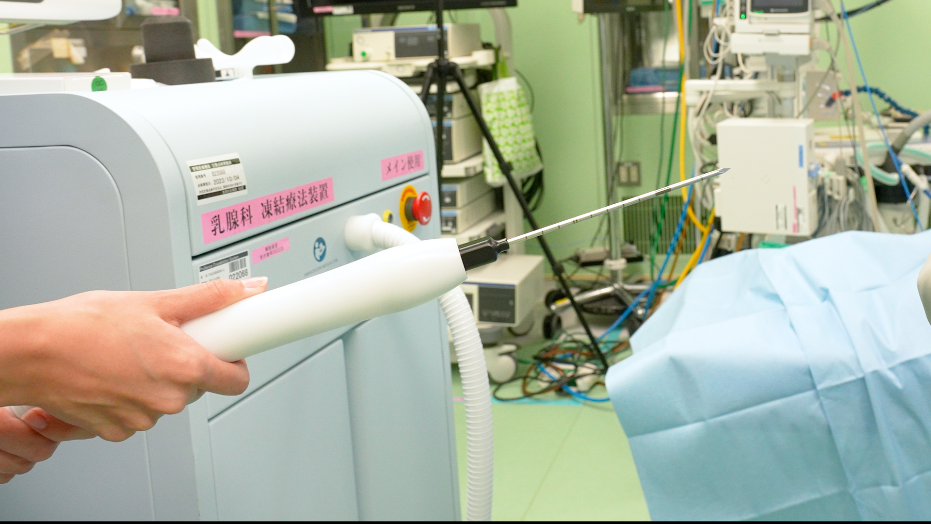 凍結療法は、乳がんに対する「切らない」局所治療法です。針を腫瘍部分に挿入し、約 -170℃ に凍結してがん細胞を死滅させます。
