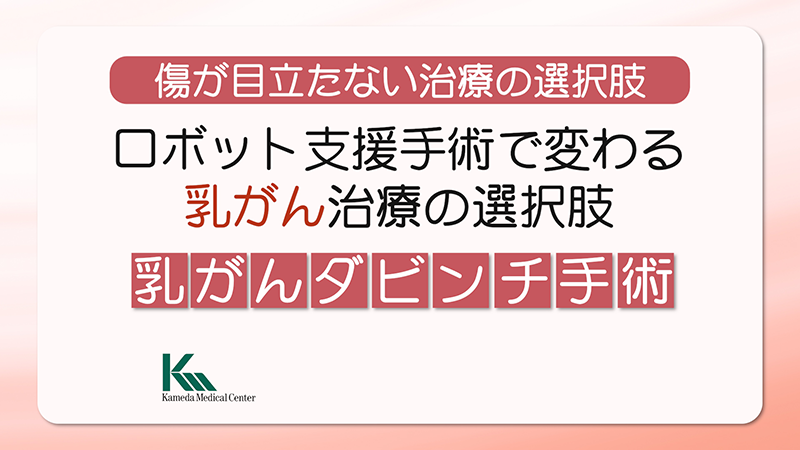 - ダ・ヴィンチ手術(ロボット手術)は、乳房全摘や温存手術を、小さな切開(約3.5~4.5cm)でおこなえる新しい治療法です。