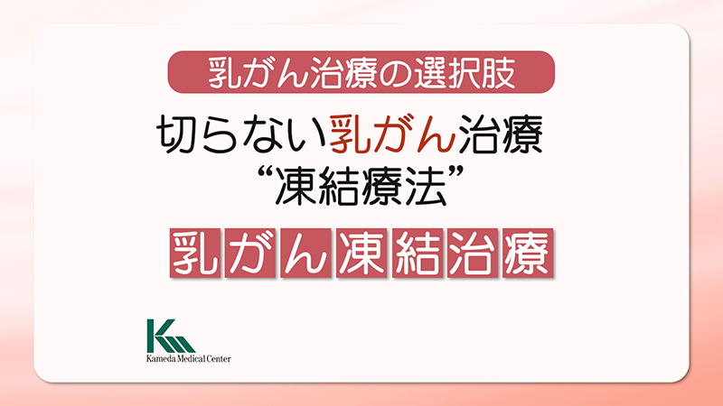 - 凍結療法(Cryotherapy)は、乳がんの小さな腫瘍に対して行われる自費での治療法です。がん細胞を凍結して破壊するため、体への負担が少なく、患者さまにとって大きな利点があります。凍結療法は適応に則り担当医からの説明に納得した上で同意頂いた方に行っています。