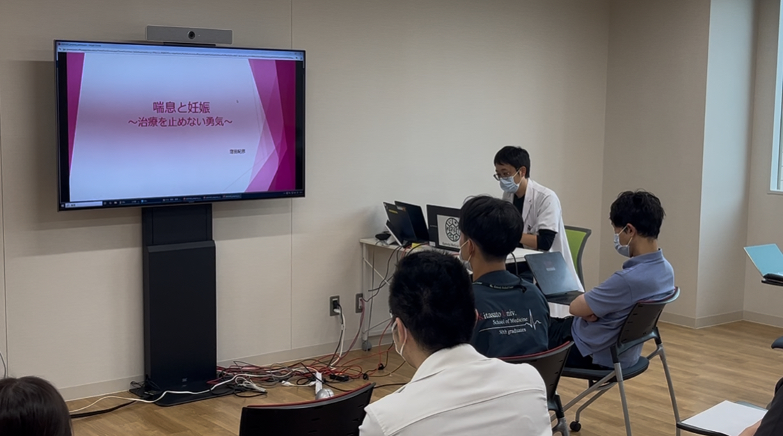 先日、妊娠中の喘息患者さんの治療方針について科内で意見交換する機会があり、当科医長の窪田紀彦先生が「妊娠と喘息~治療をやめない勇気~」というタイトルで発表しました。