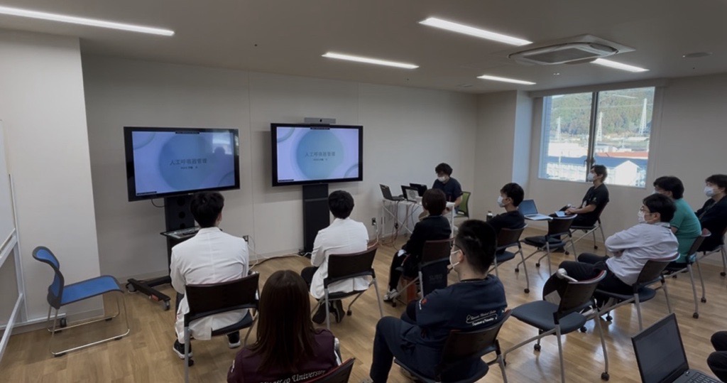当科では毎週木曜日の朝、各医師が持ち回りで注目領域について抄読会形式のレクチャーを行っています。今回は、当院呼吸ケアサポートチーム(RST)で中心的な役割を果たしている当科医員の伊藤光先生が人工呼吸器管理について発表しました。