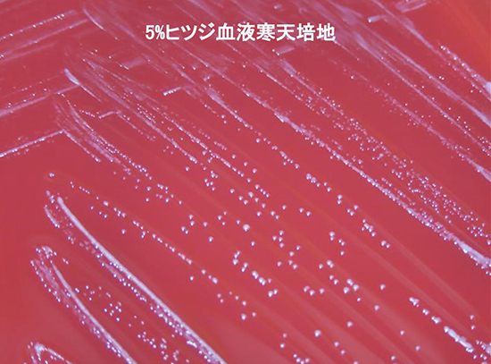 ・血液寒天培地上では嫌気条件下で小型、半透明~灰白色のコロニーを形成する5)。