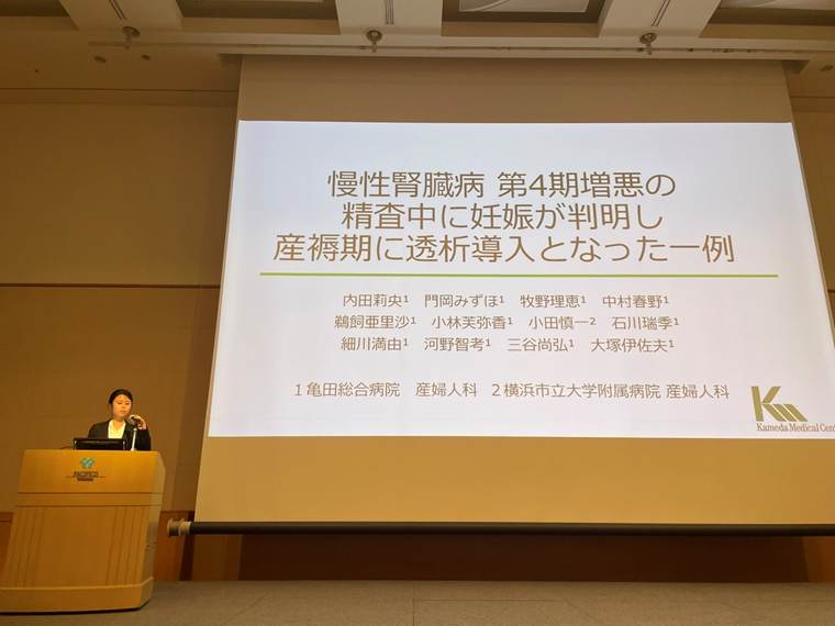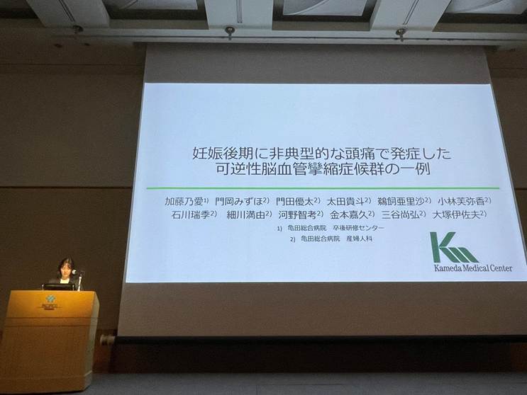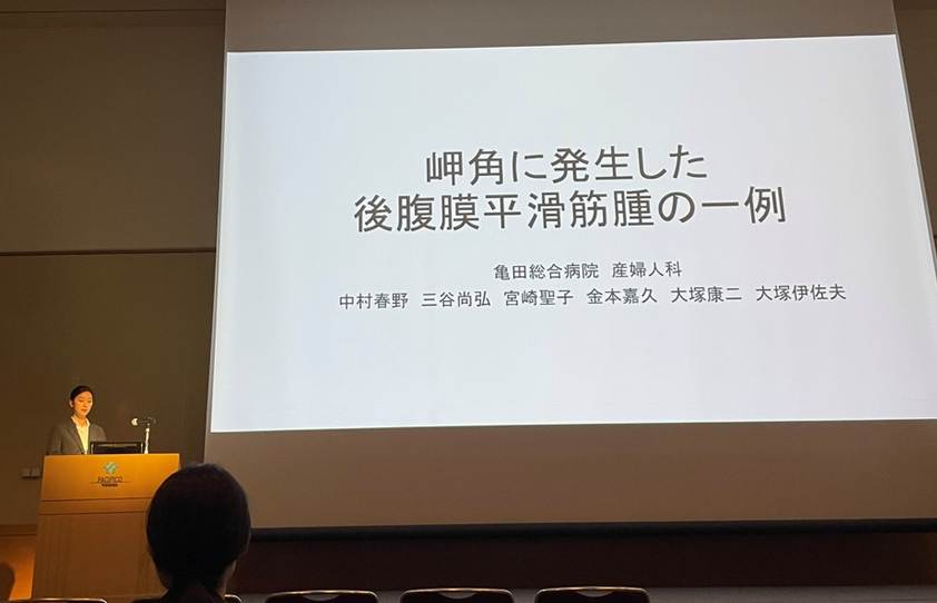 研修医中に「学会発表をしたい」という漠然とした目標を持っていましたが、この度、指導医の先生からお声がけいただき、学会発表の機会をいただくことができました。症例報告の準備を通して、一つの症例を深く学ぶ時間を持つことができ、自分自身の学びを大きく広げる機会となりました。研修医として知識や経験の不足を痛感する場面もありましたが、指導医の先生をはじめ先生方に丁寧にご指導いただいたおかげで、自信を持って発表に臨むことができました。また、当日はとても緊張していましたが、亀田の先生方が会場の中央で温かく見守りながら応援してくださり、とても心強く感じられました。初めての学会発表を亀田の産婦人科の先生方のもとで経験できたことは、今後の学術活動にも活かしていきたい大きな財産です。今回の経験を糧に、今後も研修医として、そして産婦人科医としてさらに成長していきたいと思いました!