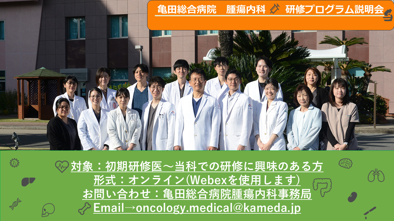 お問い合わせ:亀田総合病院腫瘍内科事務局 email: oncology.medical@kameda.jp