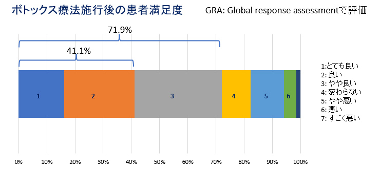 - 施術後の満足度調査では“良かった”までで41.1%、“やや良かった”まで含めると71.9%でした。